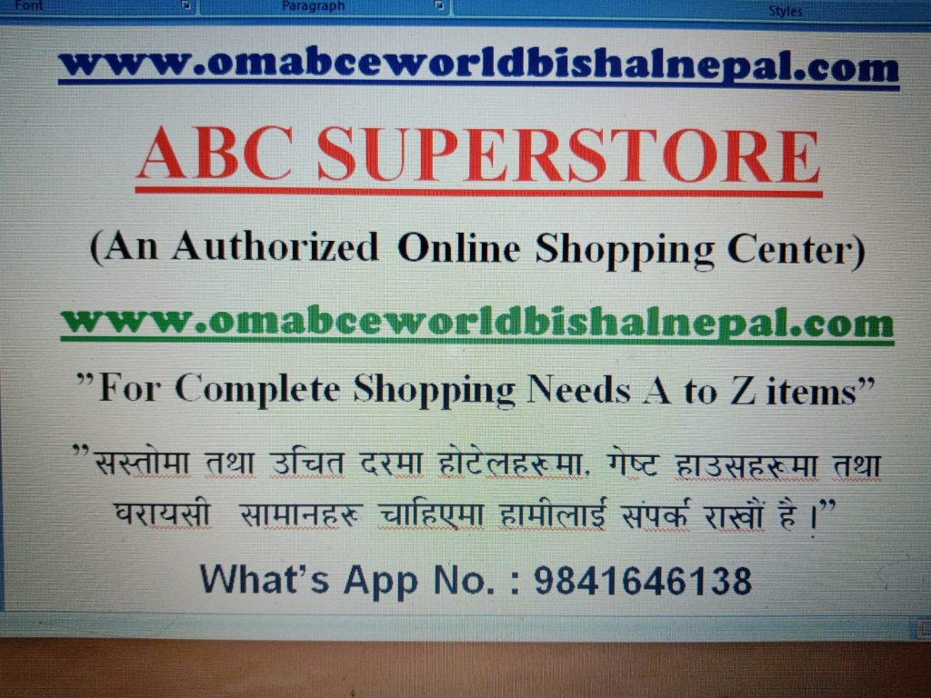 Welcome ABC eWorld for making our nation greater than other nation i.e., we called as “BISHAL NEPAL”, SO THAT WE CALLED THIS MISSION IS “GREATER NEPAL” to SEE MORE, JUST CLICK OUR WEBSITE: www.omabceworldbishalnepal.com for Amazing Sustainable Development Projects launched by highly professional experts from the global village. Our experts are highly capable locally and globally for the advancement of the various mega projects locally and globally.